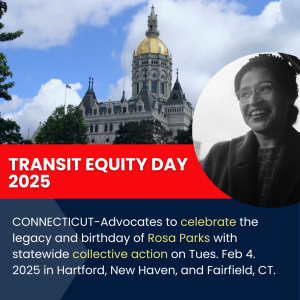 Contacts: Sydney Barnwell-860.994.0550, Jay Stange-917.601.3165, Melinda Tuhus-203.623.2186 FOR IMMEDIATE RELEASE JANUARY 30, 2025 Connecticut Comes Together For Transit Equity Day 2025: A Call For World-Class