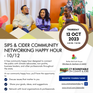 Join The Conversation The Connecticut Roundtable On Climate And Jobs invites Connecticut residents and climate justice advocates to a free community happy hour on Thursday,...
