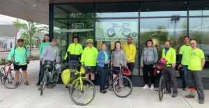 Participants in last year’s Bike to Work day ride stand outside BiCi Co. in West Hartford. This year’s ride will be held on May 19....
