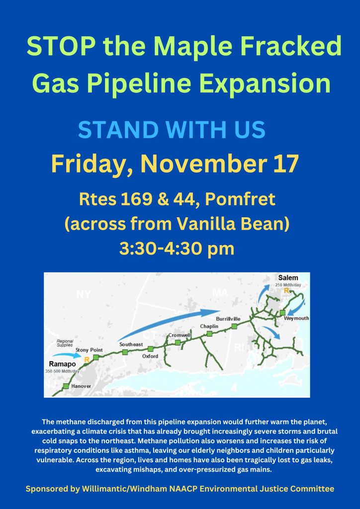 Join Connecticut’s Non-profit Accountability Group NAG and the NAACP Environmental Justice Committee on Friday, November 17 at 3:30 PM for a public rally and protest to call for the end of Project Maple. See the flyer below.